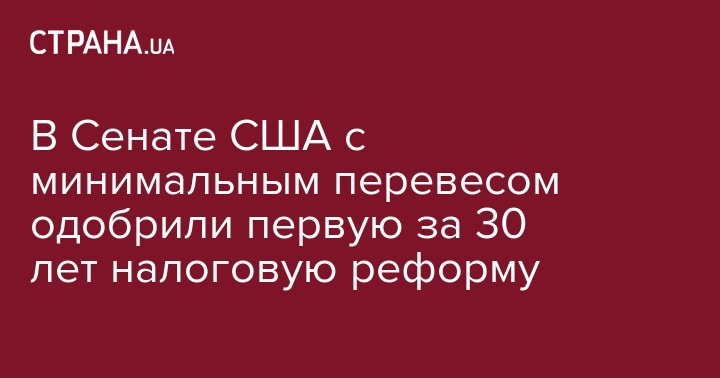 Американский Сенат одобрил законопроект о самой масштабной за последние 30 лет налоговой реформе. Ранее законопроект был одобрен Палатой представителей, пишет ВВС.