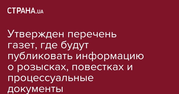В Кабмине утвердили список печатных СМИ, где будут публиковаться объявления о вызовах в суд ответчиков, свидетелей, третьих лиц, местонахождение которых неизвестно, повестки подозреваемым и обвиняемым, а также информация о процессуальных документах в 2018 году.