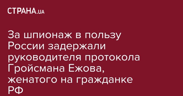 За шпионаж в пользу России задержали руководителя протокола Гройсмана Ежова, женатого на гражданке РФ