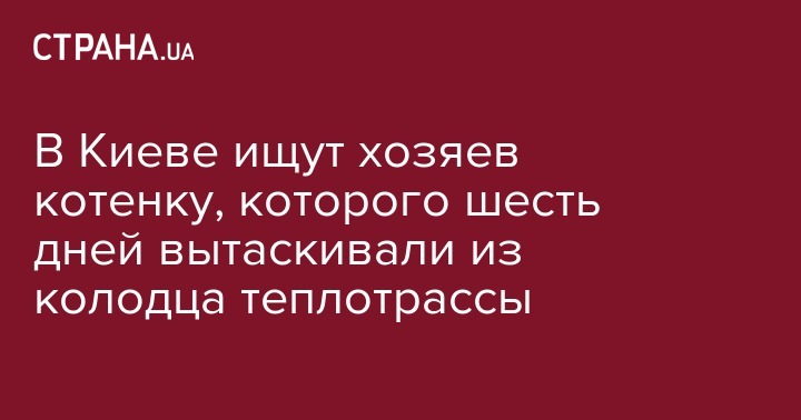 В Киеве ищут дом для котенка, которого шест дней подряд пытались вытащить из теплотрассы, куда он упал, пролетев 7 метров.