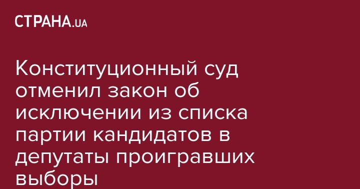 Конституционный суд признал неконституционным и отменил закон об исключении кандидатов в депутаты парламента из избирательного списка партии в той его части, где по итогам голосования таковые не получили права на распределение мандатов в многомандатном округе. Об этом говорится в сообщении пресс-службы суда.