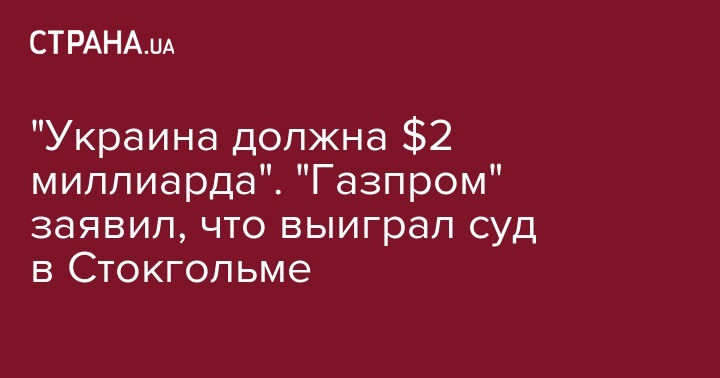 "Украина должна $2 миллиарда". "Газпром" заявил, что выиграл суд в Стокгольме