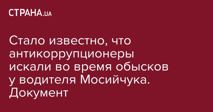 Стало известно, что антикоррупционеры искали во время обысков у водителя Мосийчука. Документ