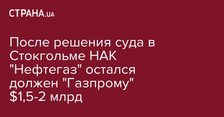 Стокгольмский арбитраж сегодня принял окончательное решение по спору НАК "Нефтегаз Украины" и "Газпрома" по контракту купли-продажи газа, подписанного в 2009 году. "Нафтогаз" заявил, что выиграл суд над российским "Газпромом". В ответ российская сторона пояснила, что суд оставил в силе основные положения контракта. По итогу, как пишут "Украинские новости", НАК остался должен россиянам от $1,5 млрд до $2 млрд.