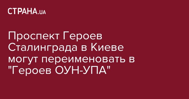В Киеве могут переименовать проспект Героев Сталинграда на Оболони в проспект Героев ОУН-УПА. Петиция с таким предложением зарегистрирована на сайте Киеврады.