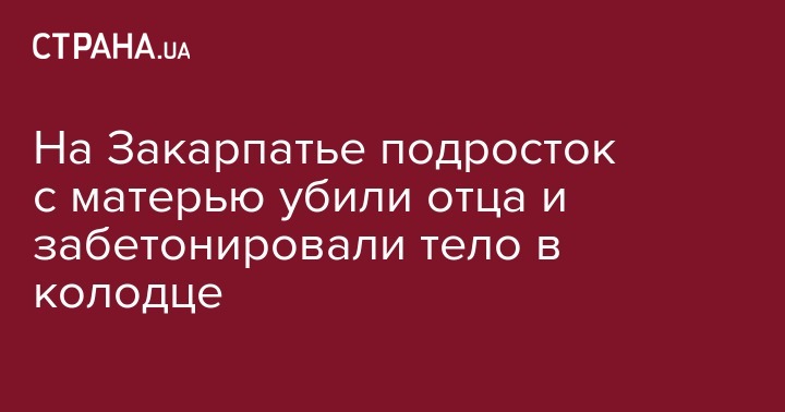 В поселке Хуст Закарпатской области несовершеннолетний с матерью убили 43-летнего мужчину и забетонировали его в колодце. Об этом сообщает пресс-служба полиции Закарпатской области.