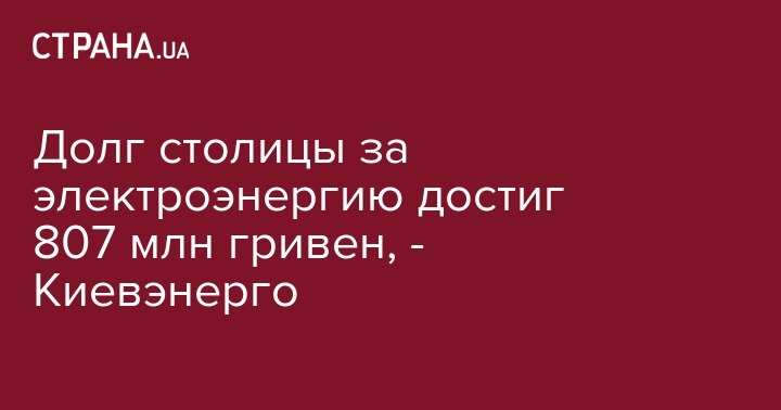 На 1 декабря этого года долг столичных потребителей за использованную электрическую энергию составляет 807 млн грн.