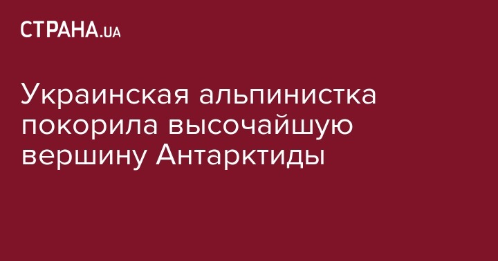 Украинская альпинистка Татьяна Яловчак стала первой в истории Украины женщиной, которой удалось покорить пик Винсон в Антарктиде, высотой в 4897 метров. Об этом сообщает "Интерфакс-Украина".