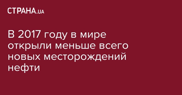 Совокупные запасы всех новых месторождений нефти и газа, открытых в 2017 году, составили минимальные за всю историю подсчета 6,7 млрд баррелей нефтяного эквивалента.