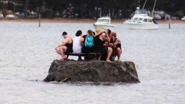 В Новой Зеландии компания людей насыпала искусственный остров недалеко от берега, чтобы обойти местный запрет на распитие алкоголя в общественных местах и отпраздновать Новый год на свежем воздухе.