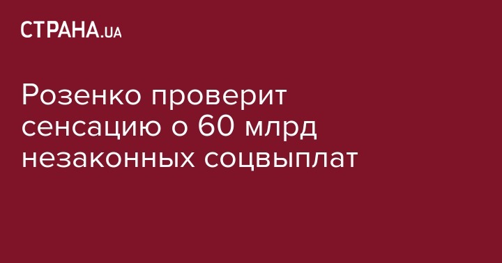 Вице-премьер-министр Украины Павел Розенко поручил трем ведомствам проверить сенсационное сообщение о 60 млрд гривен незаконных социальных выплат. Об этом вице-премьер написал на своей странице в социальной сети Facebook.
