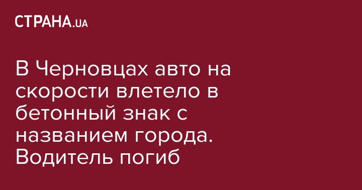 Рано утром 2 января в Черновцах автомобиль на высокой скорости разбился о бетонный знак с названием города.