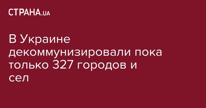 В Украине уже переименованы 327 населенных пунктов, названия которых подпадали под закон о декоммунизации, а в целом переименованию подлежат 987 населенных пунктов, сообщил руководитель Украинского института национальной памяти Владимир Вятрович в эфире 5 канала.