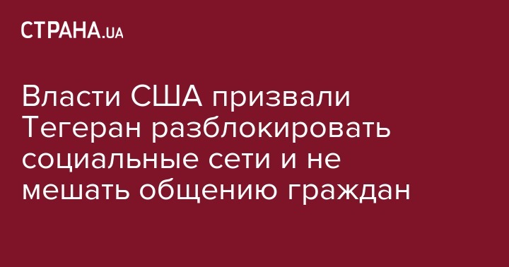 Власти США призвали власти Ирана отменить блокировку социальных сетей, установленную на фоне протестов в крупных иранских городах. Об этом сообщает Associated Press.