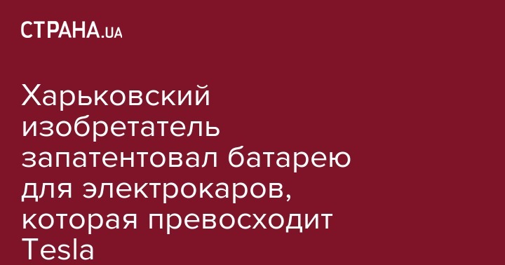 Харьковский инженер Александр Цихмистро запатентовал аккумуляторную батарею для электромобилей с характеристиками, якобы превосходящими разработки Тesla.