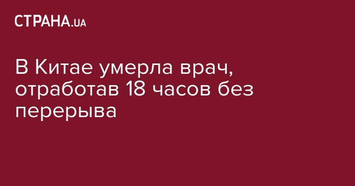 В Китае умерла 43-летняя женщина-врач, отработав 18 часов без перерыва.