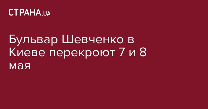 "7 и 8 мая 2016 года с 08:00 до 20:00 коммунальная корпорация "Киевавтодор" будет проводить работы по устройству асфальтобетонного покрытия на бульваре Тараса Шевченко. В частности, работы будут проводиться на участке от ул. Владимирской до ул. Симона Петлюры в сторону площади Победы, четная сторона бульвара", - говорится в сообщении.