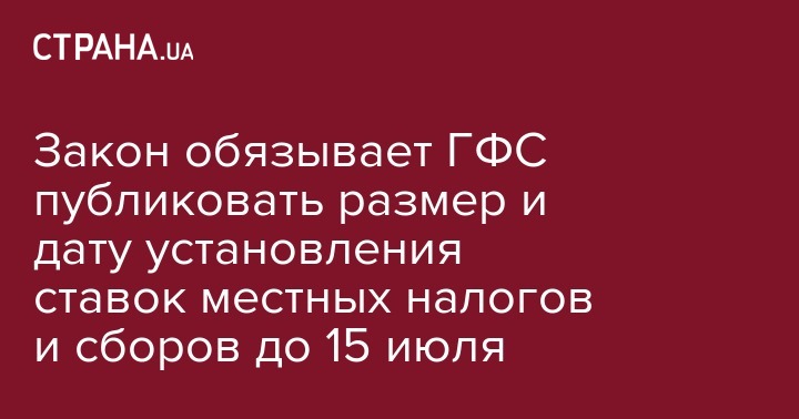 Закон обязывает ГФС публиковать размер и дату установления ставок местных налогов и сборов до 15 июля