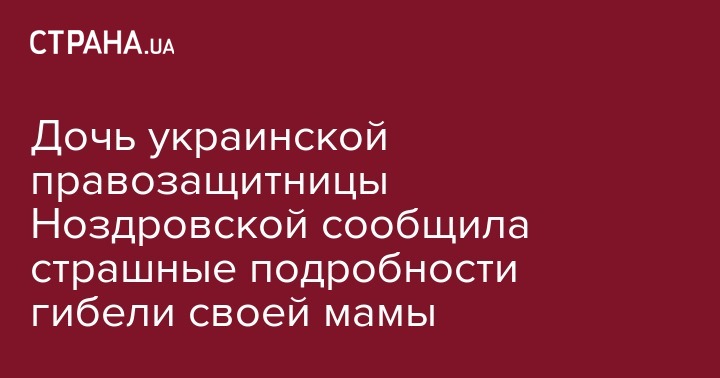 Дочь украинской правозащитницы Ноздровской сообщила страшные подробности гибели своей мамы