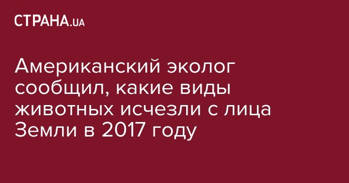 В течение 2017 года с лица Земли исчезло несколько видов диких животных. Об этом сообщил ученый и эколог из Обернского университета (США) Дэвид Стэн.