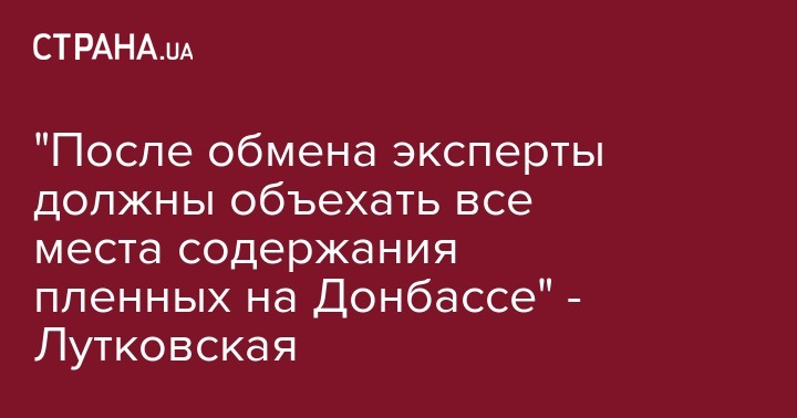Окончательное завершение обмена пленными по принципу "всех на всех" с неподконтрольными Киеву территориями Донбасса должны будут подтверждать эксперты. Об этом заявила в четверг уполномоченный Верховной рады по правам человека Валерия Лутковская в эфире телеканала 112 Украина.
