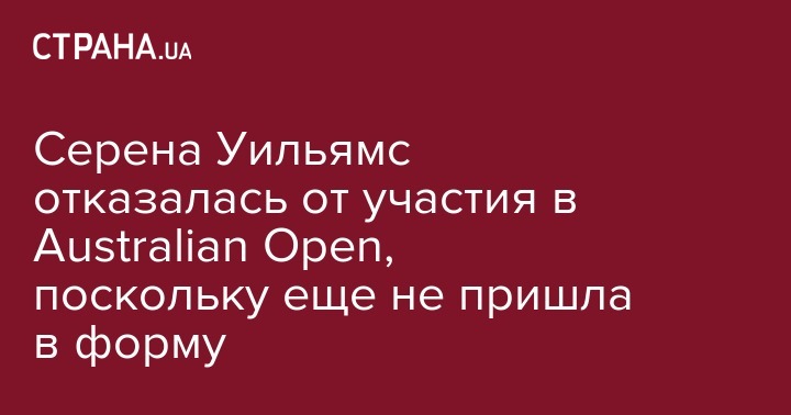 Американская теннисистка Серена Уильямс не будет принимать участие в Открытом чемпионате Австралии 2018, поскольку недостаточно готова.