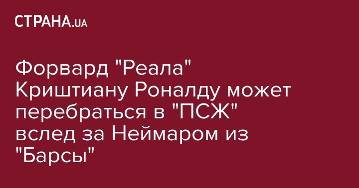 Форвард "Реала" Криштиану Роналду может перебраться в "ПСЖ" вслед за Неймаром из "Барсы"