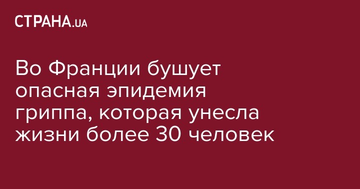 По данным министерства здравоохранения Франции, за период с 25 по 31 декабря заболеваемость гриппом или болезни, похожие на грипп, выросло более чем на 80%. Об этом сообщает французское издание 20 минут.