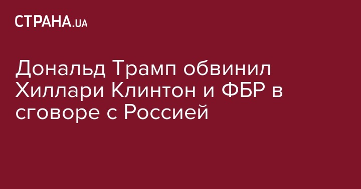 Президент США Дональд Трамп в пятницу обвинил бывшего госсекретаря Хиллари Клинтон в "сговоре с ФБР и Россией". Соответствующую позицию он изложил на собственной странице в Twitter.