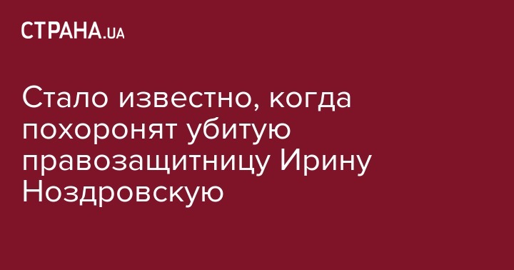 Она добавила, что прощание с Ноздоровской состоится утром в селе Демидов под Киевом. Точное время не указано.