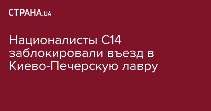 Около 30 человек в балаклавах из праворадикальной организации С14 заблокировали въезд в Киево-Печерскую лавру и перекрыли шлагбаум.
