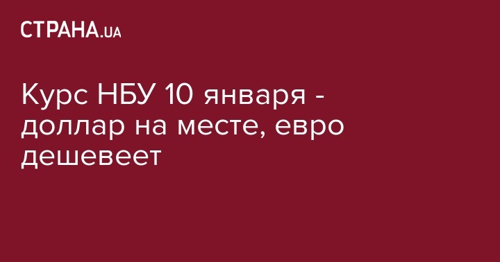 В среду, 10 января, Нацбанк установил официальный курс гривны по отношению к иностранным валютам. Доллар остался на прежнем уровне, по сравнению с 9 января, а евро подешевел.