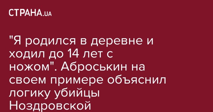 Заместитель главы Нацполиции Вячеслав Аброськин в ходе брифинга о расследовании убийства юриста Ирины Ноздровской рассказал, что постоянно носил с собой нож, когда в юности жил в селе.