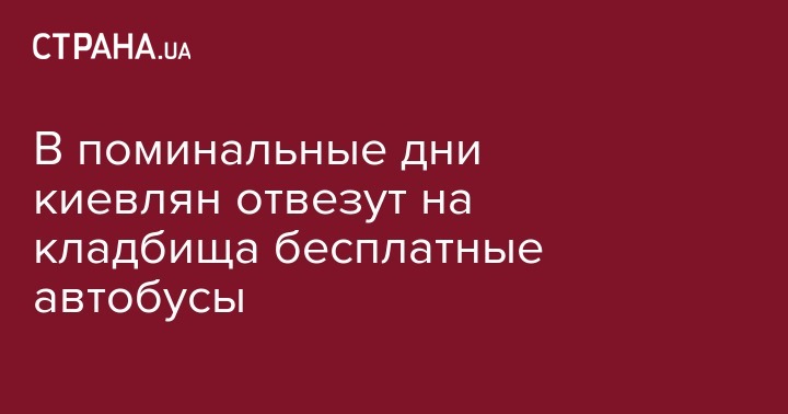 "В поминальные дни на больших кладбищах Киева, в частности на Берковцах, Лесном, Северном и Южном, будет ездить несколько автобусов — от въезда на кладбище и по всей территории центральными аллеями. Проезд — бесплатный", — сказал он.