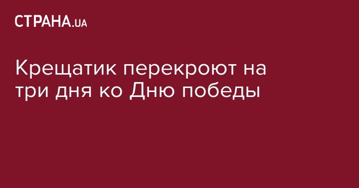 "С 10:00 7 мая до 6:00 10 мая 2016 года, движение автотранспорта по улице Крещатик будет полностью ограничено на участке от ул. Богдана Хмельницкого до аллеи Небесной Сотни", - говорится в сообщении КГГА.