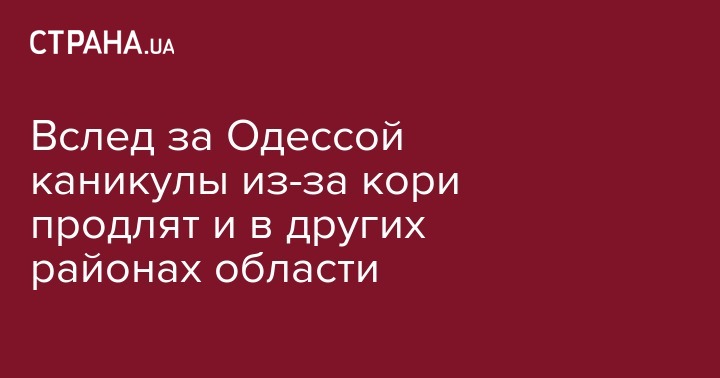 В областном центре аналогичная комиссия Одесского горсовета по аналогичным причинам рекомендовала школам продлить зимние каникулы до 22 января. При этом в Одессе также в настоящее время вырабатывают пути выполнения учебных планов и программ не привитыми от кори детьми, которых комиссия рекомендовала не пускать в школы.