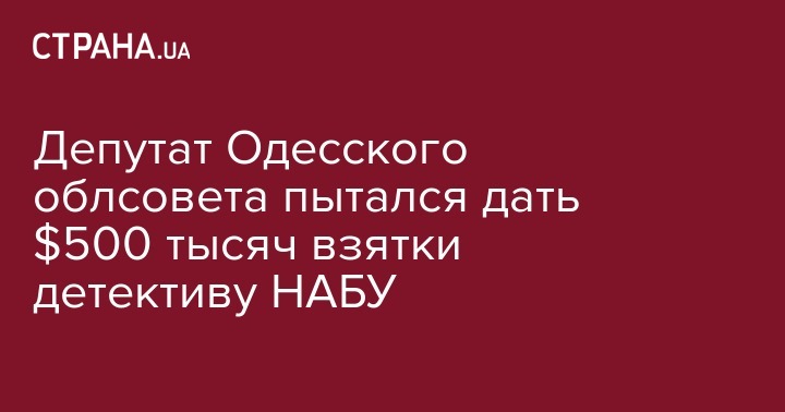 Депутат Одесского облсовета пытался дать сотруднику Национального антикоррупционного бюро (НАБУ) 500 тыс. долларов взятки.