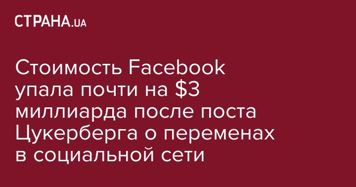 Объявление о предстоящем изменении способа отображения новостей на ленте социальной сети Facebook уже обошлось ее основателю Марку Цукербергу в 2,9 млрд долларов.