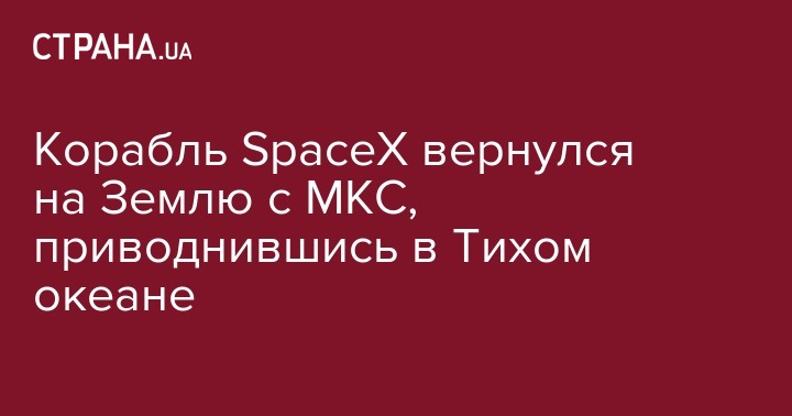 Корабль SpaceX вернулся на Землю с МКС, приводнившись в Тихом океане