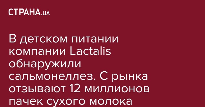 Знаменитая компания Lactalis отзывает более 12 000 000 пачек сухого молока. Это произошло после того как в молочных продуктах компании для детей выявили возбудителей сальмонеллеза.