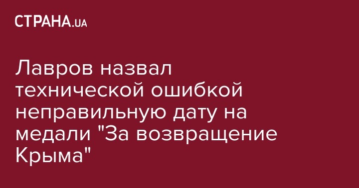 Глава МИД России Сергей Лавров назвал технической ошибкой дату на медали "За возвращение Крыма".