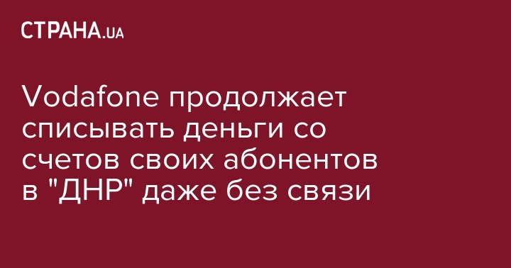 Оператор мобильной связи Vodafone продолжает списывать по 3 грн в день абонплаты со счетов жителей временно неподконтрольной части Украины. При этом, самих услуг мобильной связи компания, по факту, там не оказывает из-за поломки.