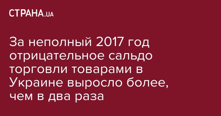 За неполный 2017 год отрицательное сальдо торговли товарами в Украине выросло более, чем в два раза