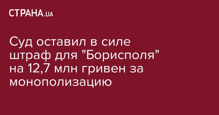 Киевский апелляционный хозяйственный суд оставил в силе решение Антимонопольного комитета оштрафовать международный аэропорт "Борисполь" на 12,78 млн гривен. Об этом в Facebook сообщила представитель АМКУ Агия Загребельская.