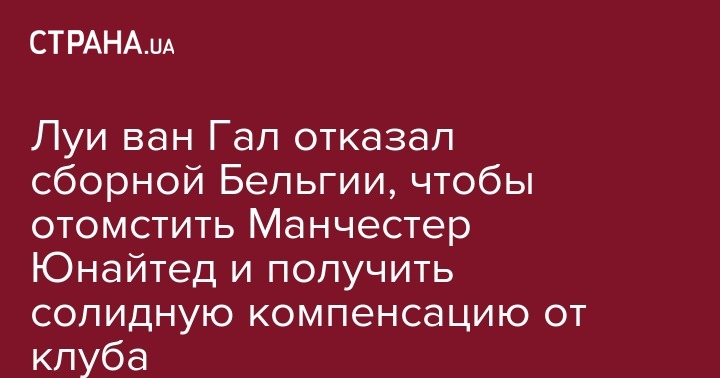 В истории с увольнением бывшего главного тренера Манчестер Юнайтед голландца Луи ван Гала появились любопытные детали. Оказывается, нидерландский специалист отказался от предложения возглавить сборную Бельгии, чтобы получить солидную компенсацию от "красных дьяволов" за разрыв контакта.