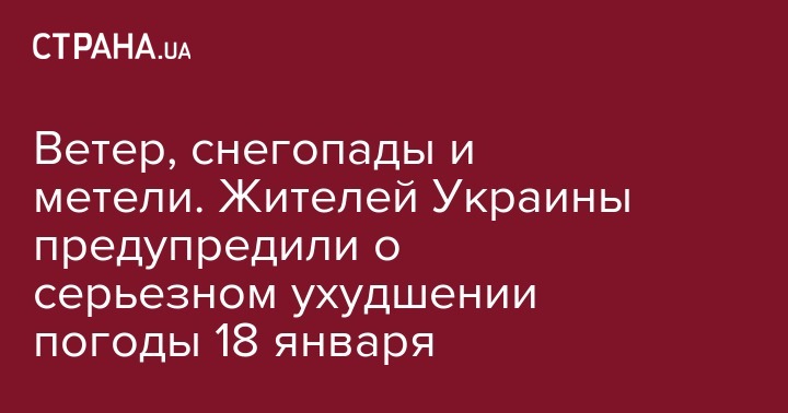 В четверг, 18 января в Украине ожидается серьезное осложнение погодных условий. Погоду будут определять снегопады и сильные метели, а также понижение температуры воздуха.