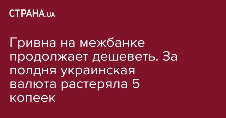 Гривна сегодня, 17 января, за полдня после открытия торгов на межбанке уже подешевела по отношению к доллару на 5 копеек. Об этом пишет УНИАН со ссылкой на дилера коммерческого банка.