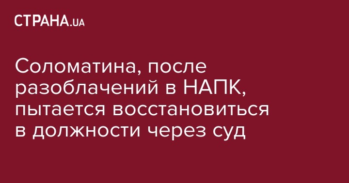 Соломатина, после разоблачений в НАПК, пытается восстановиться в должности через суд