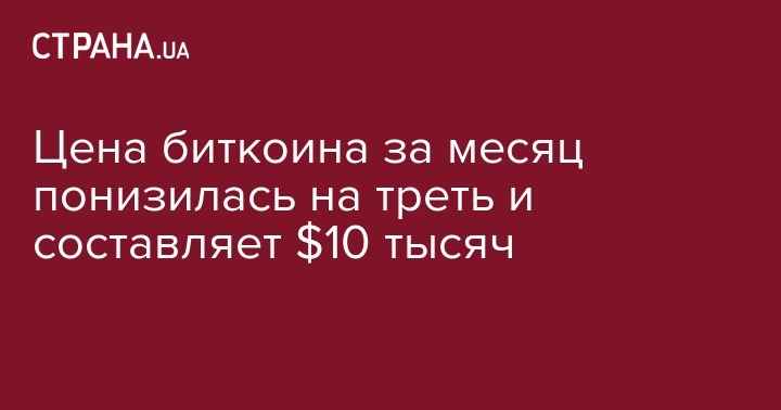 Цена биткоина за месяц понизилась на треть и составляет $10 тысяч