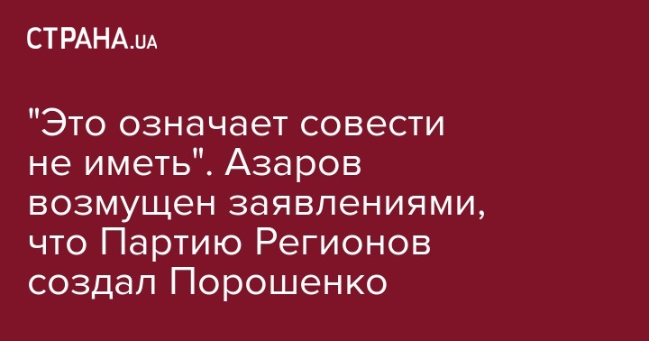"Это означает совести не иметь". Азаров возмущен заявлениями, что Партию Регионов создал Порошенко